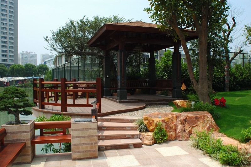 石台阶:台阶是花园中最能适应斜坡,并且能将不同高度的地表相连的实体。除了作为道路使用外,它本身还是花园中优美的景观不可或缺的一部分,可以连接花园中独立的部分,如草坪与台地,也可以使陡坡变得易于行走。